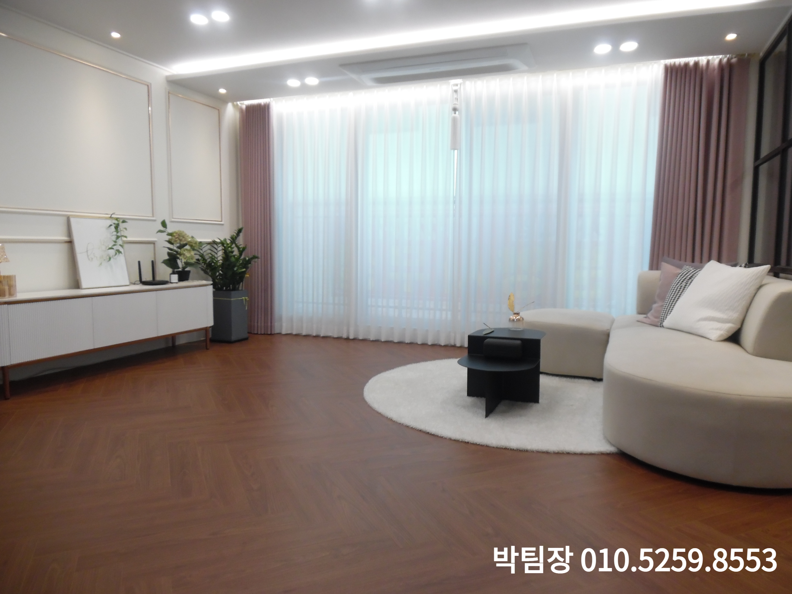 복도는 헤링본 강마루 시공으로