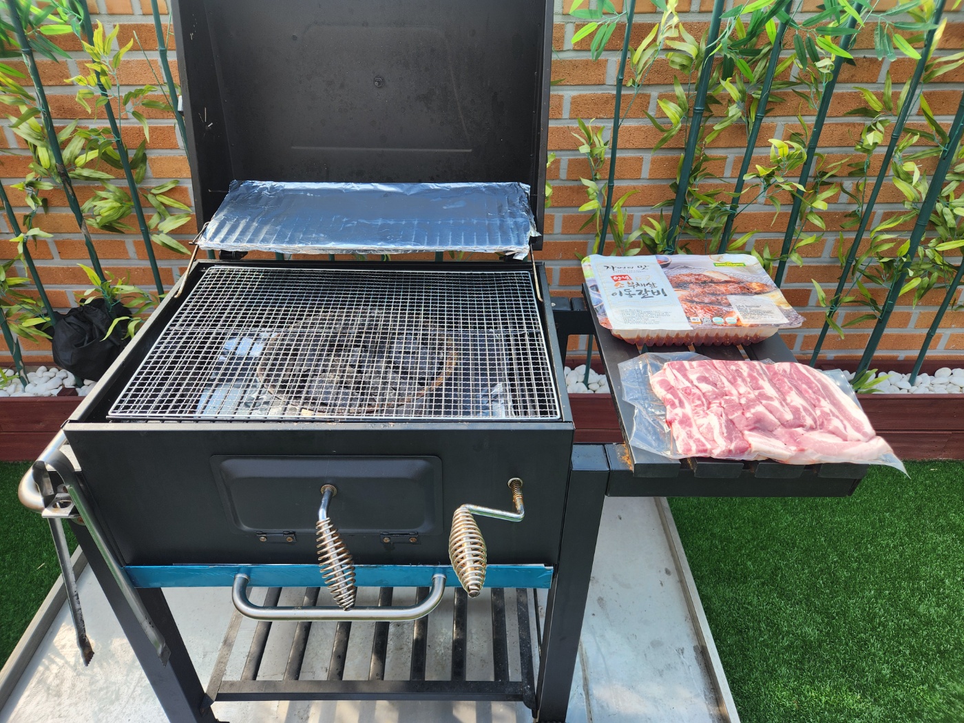 당근 숯불에 고기를