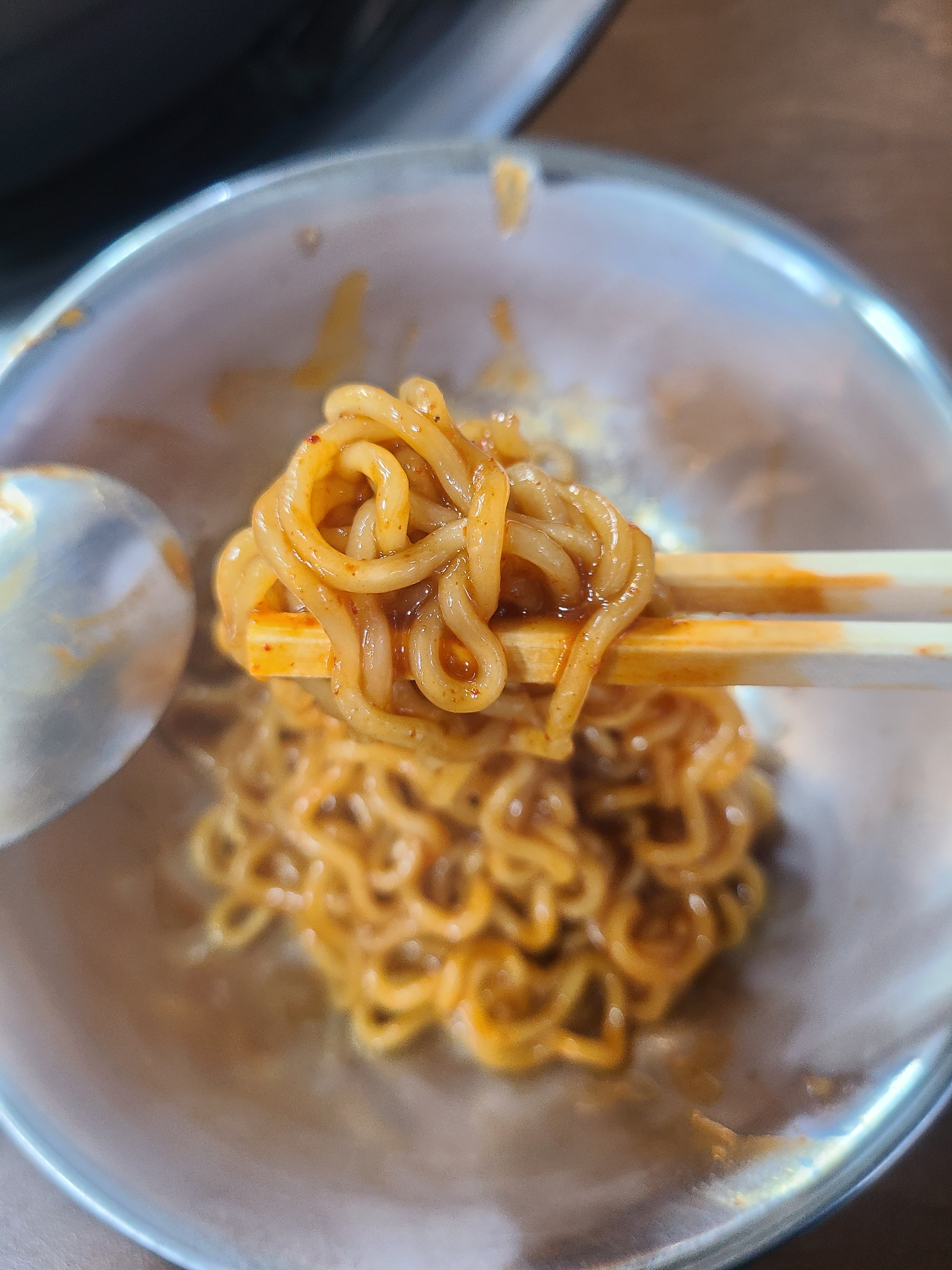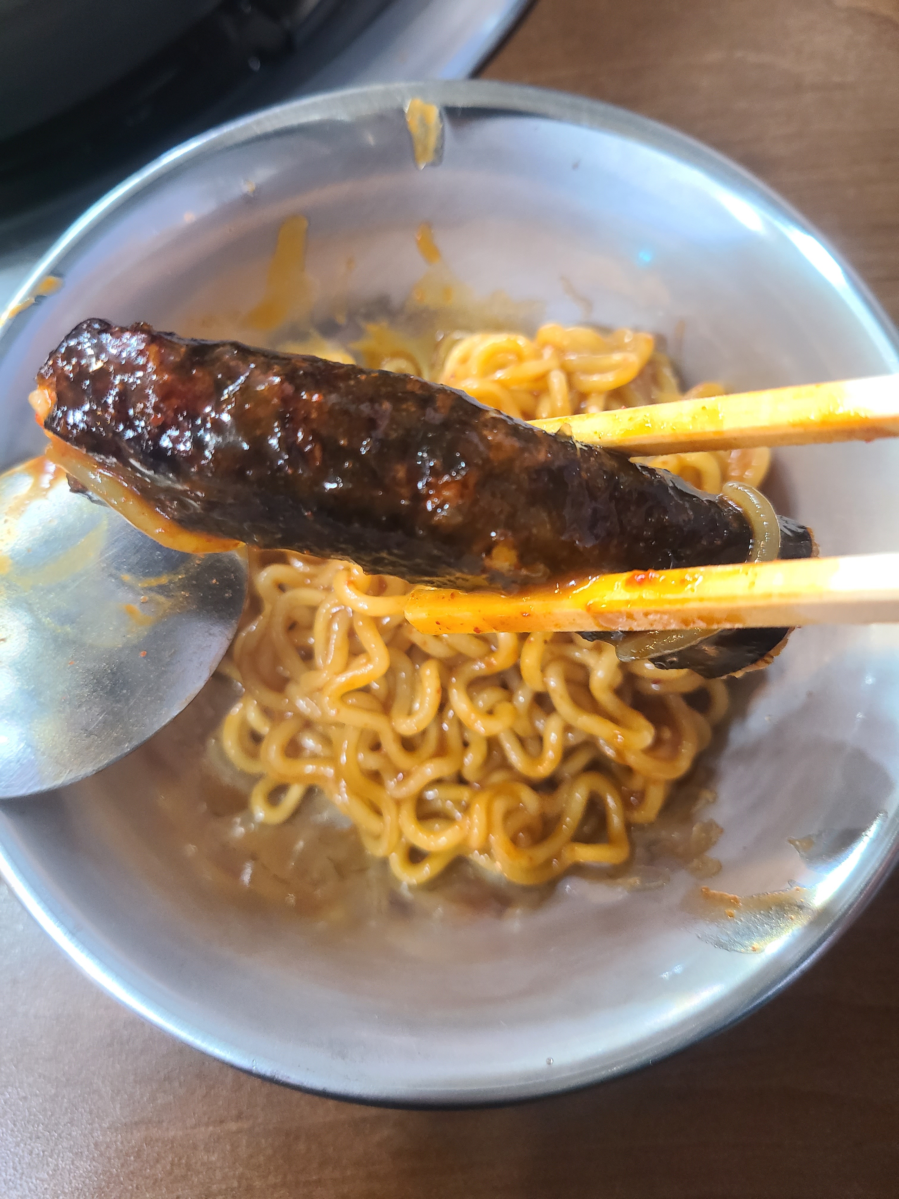 국자로 섞어서 먹으면 끄읕~
