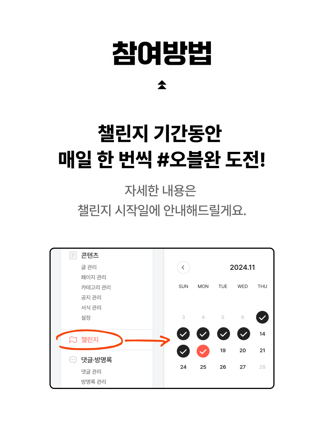 챌린지시작일에 안내해