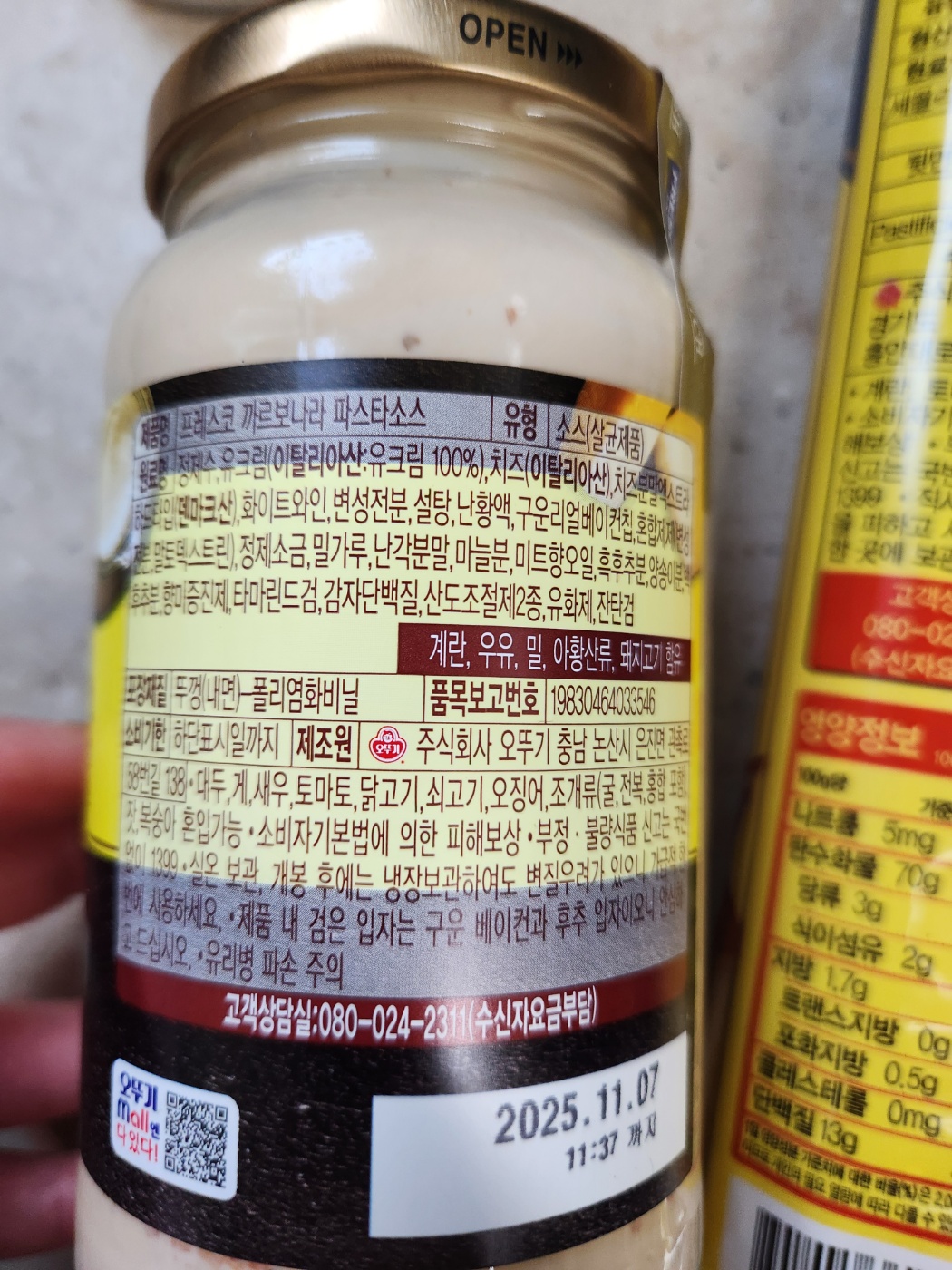 일단 #오뚜기까르보나라파스타