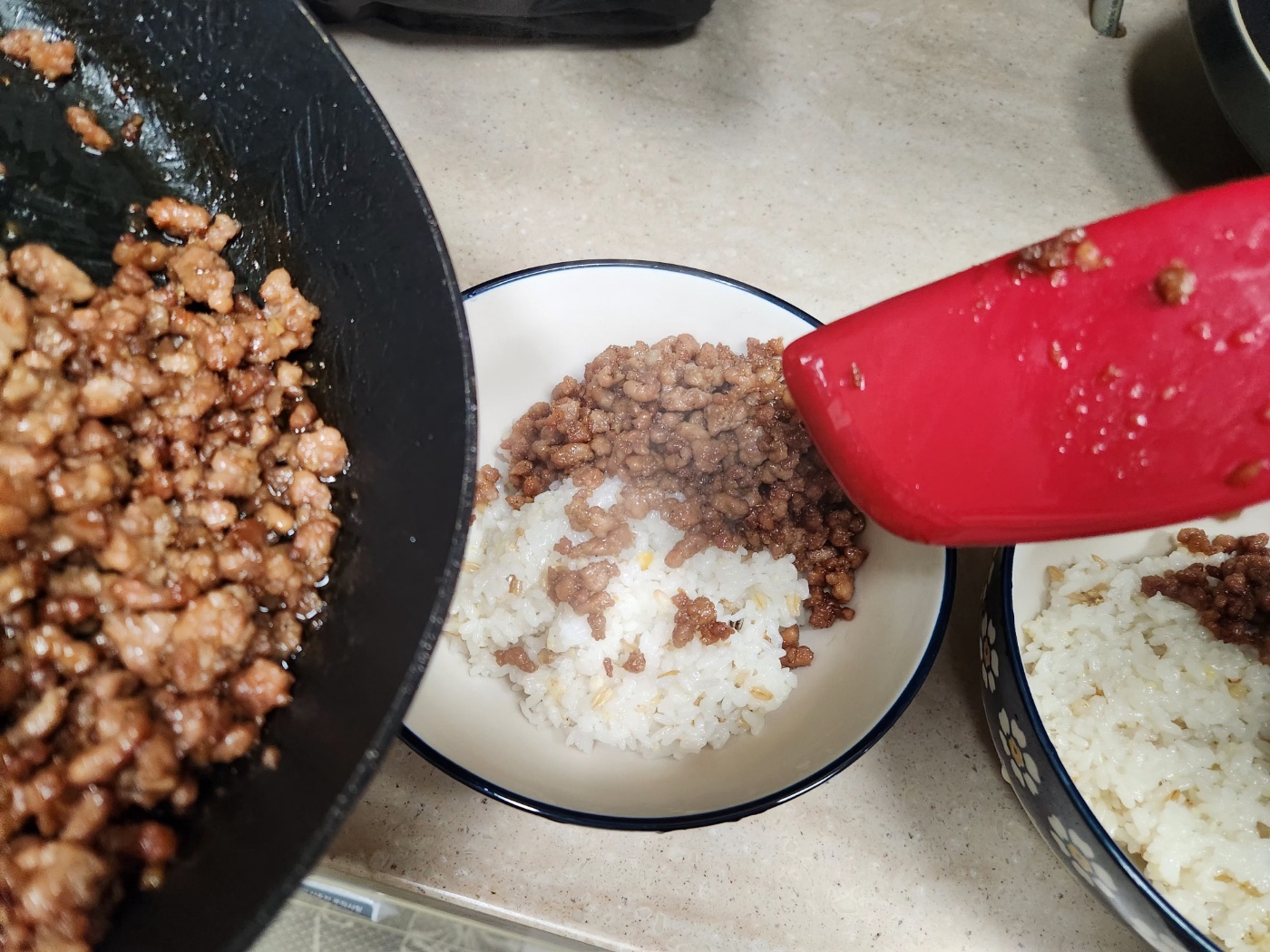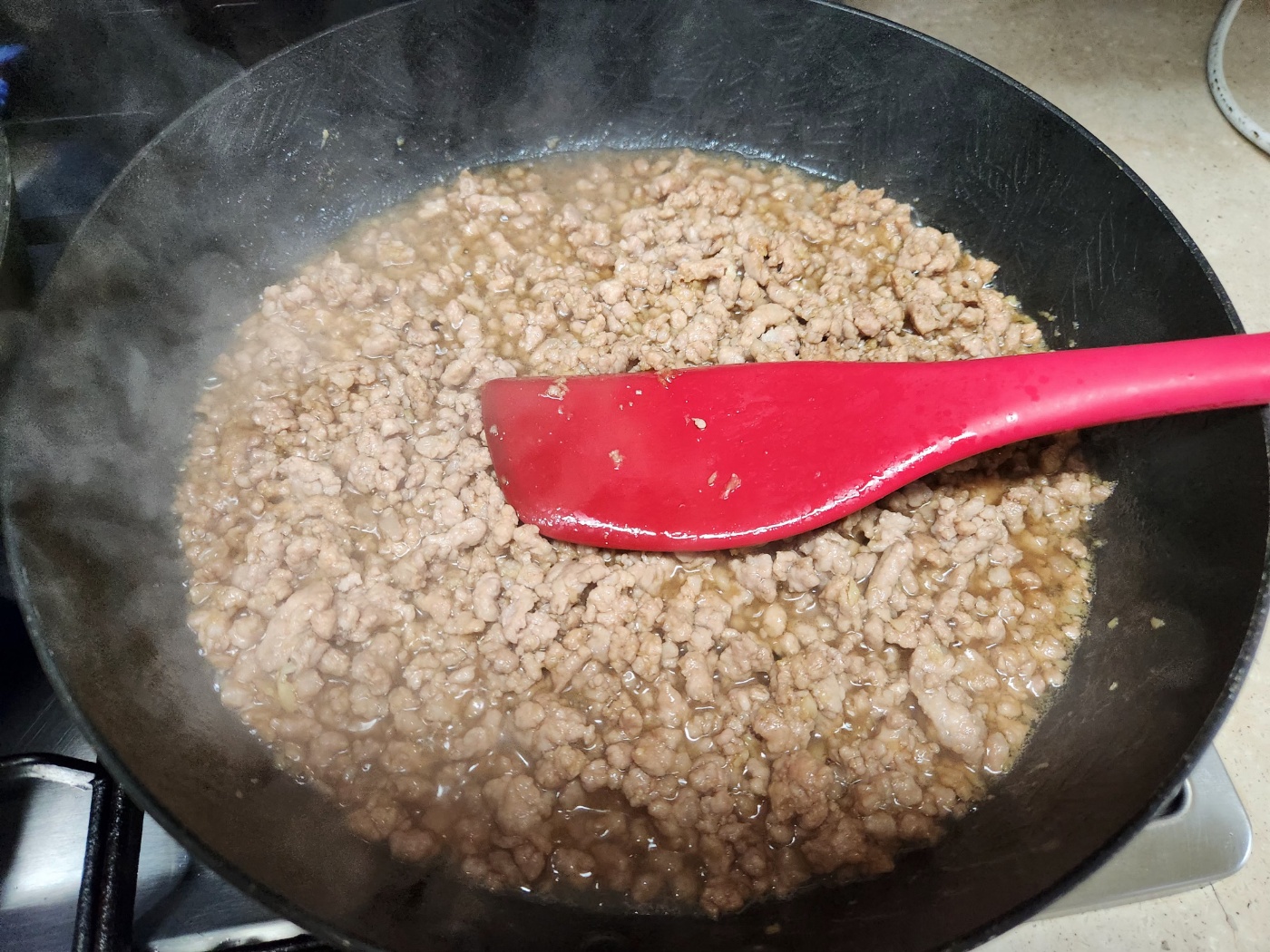 3. 다진고기는 후라이팬에 기름