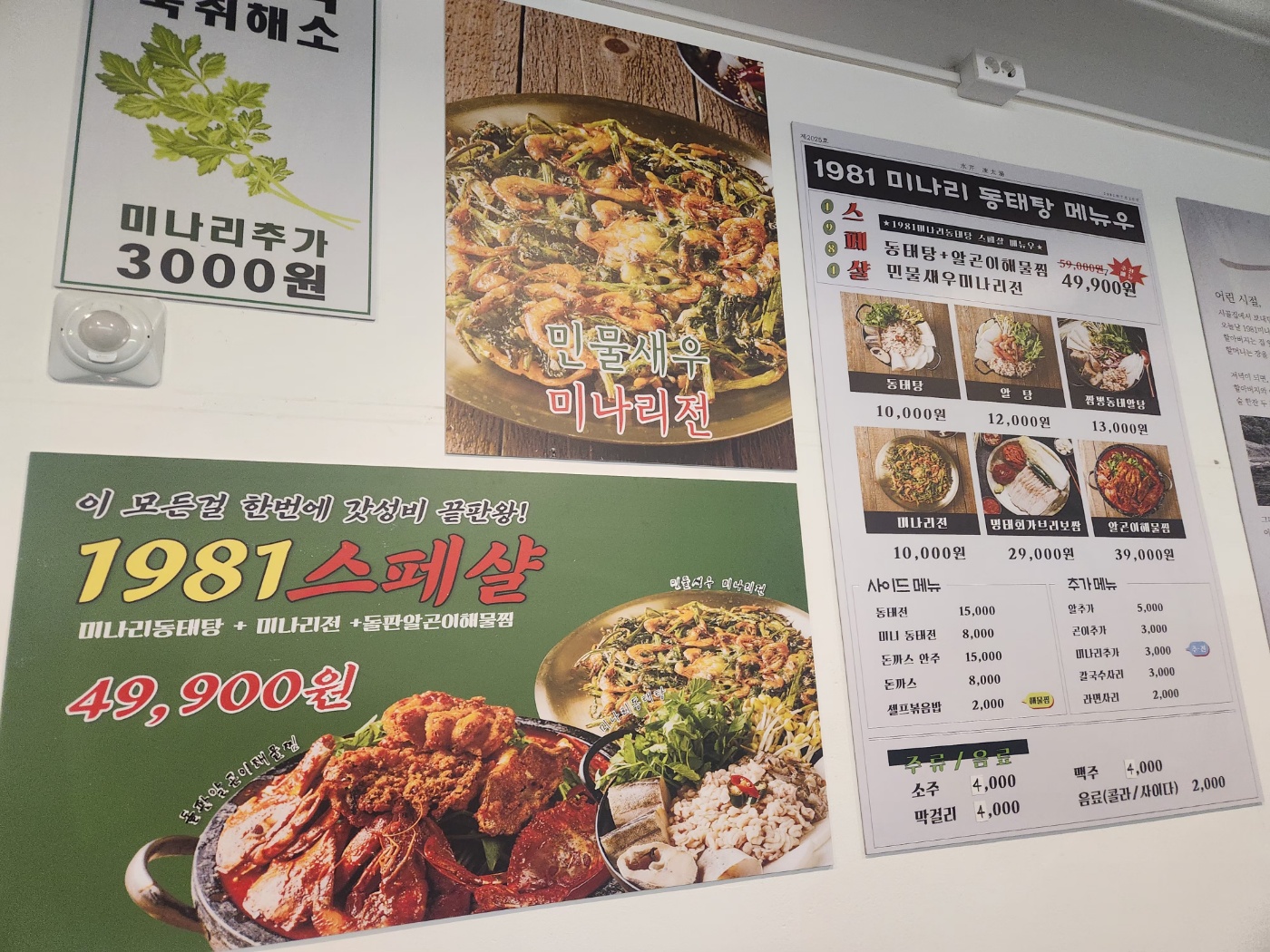 1981미나리동태탕 민물새우미나리전 알곤이해물찜까지!!