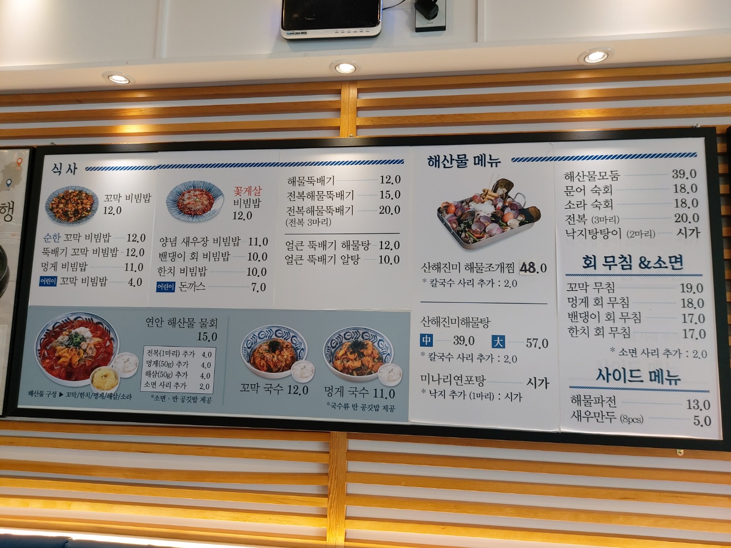 메뉴판을 보니