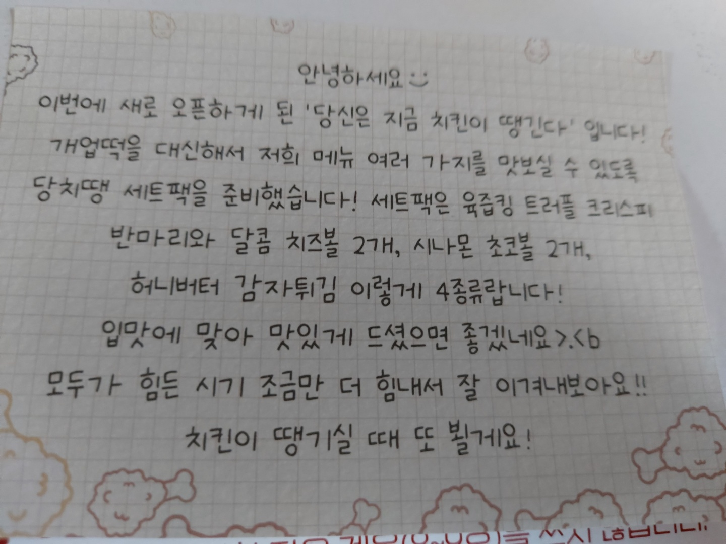 개업떡 대신에 치킨을