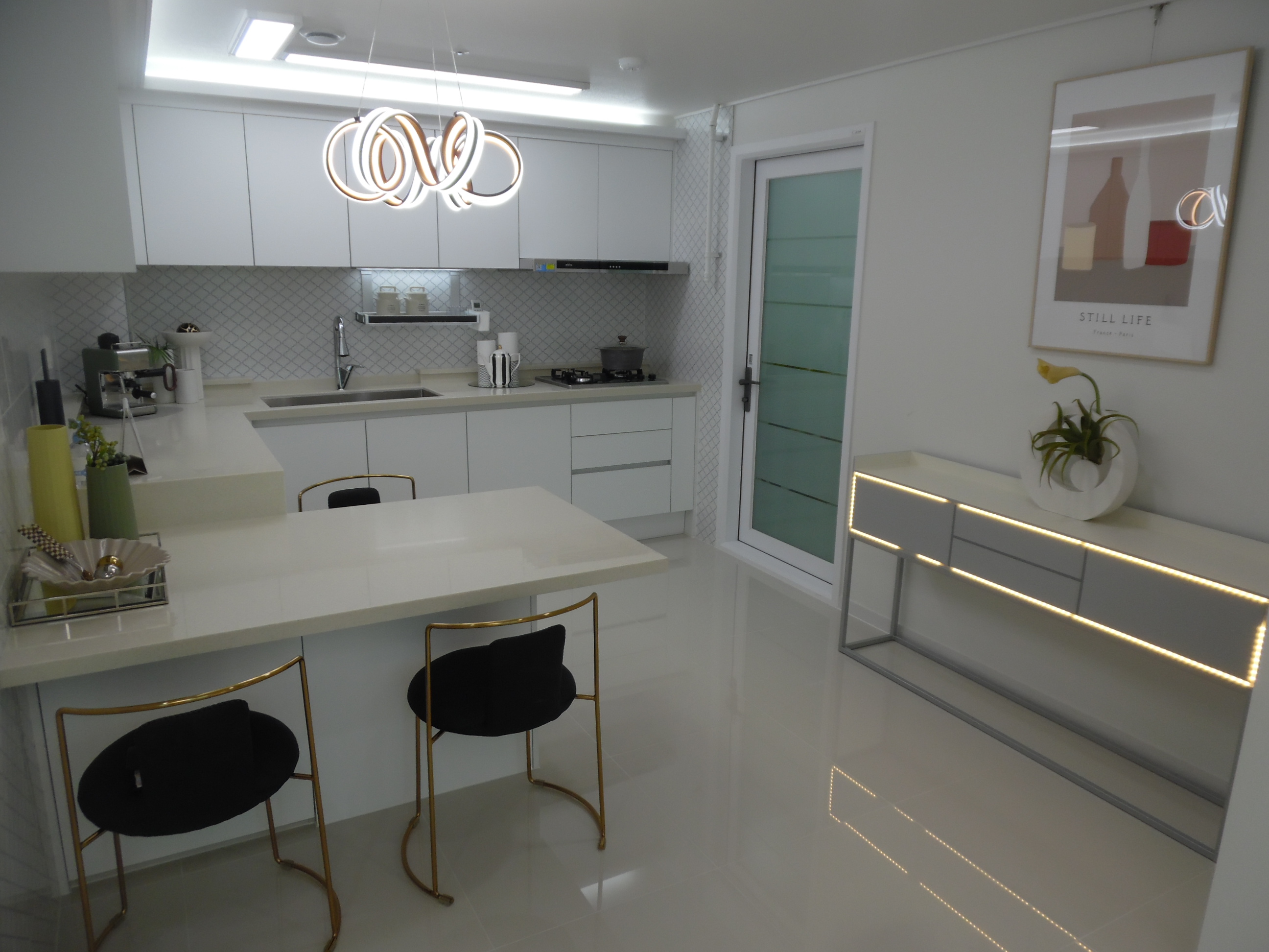 ㄷ자로 되어 있는 아일랜드식탁