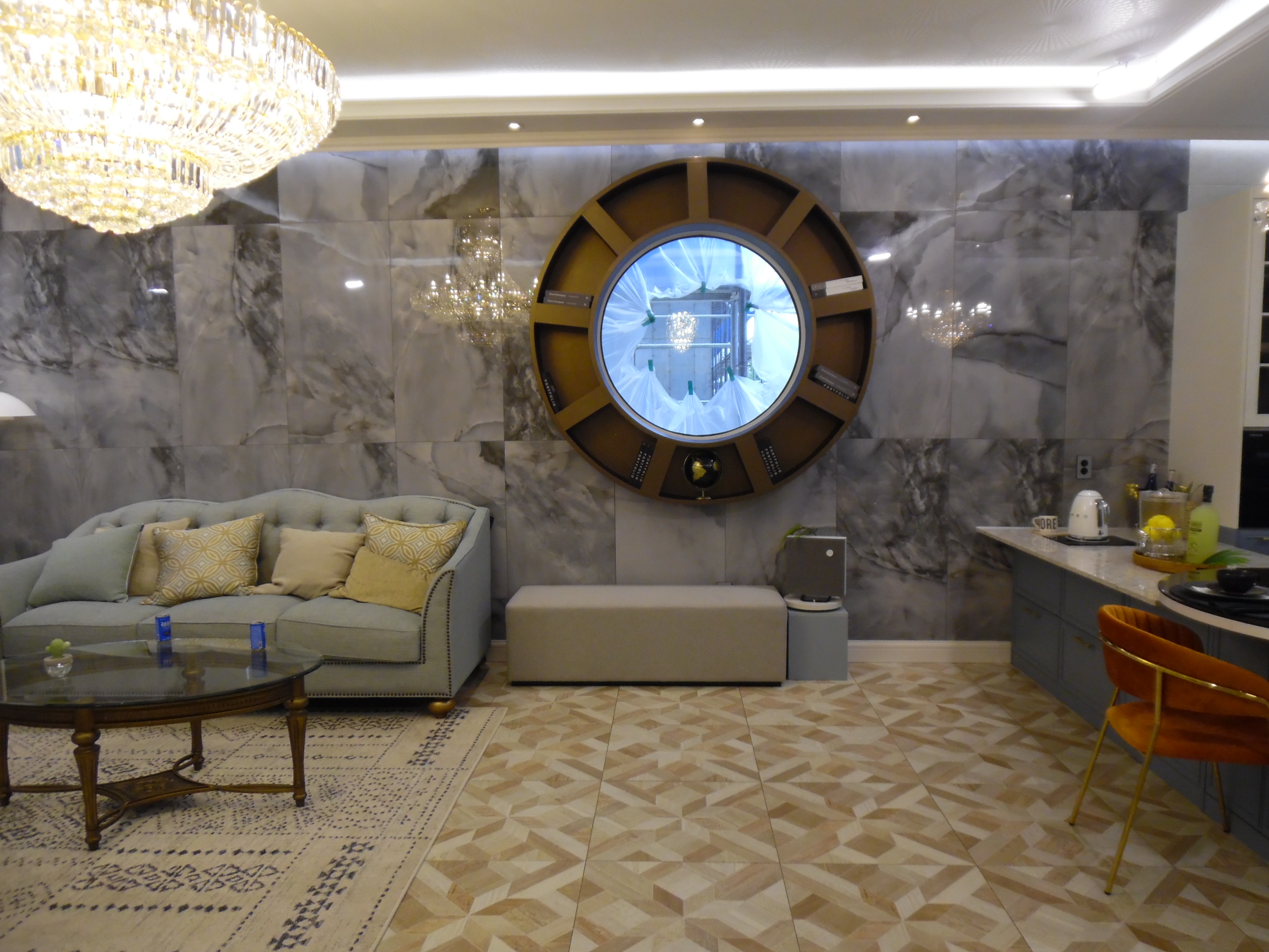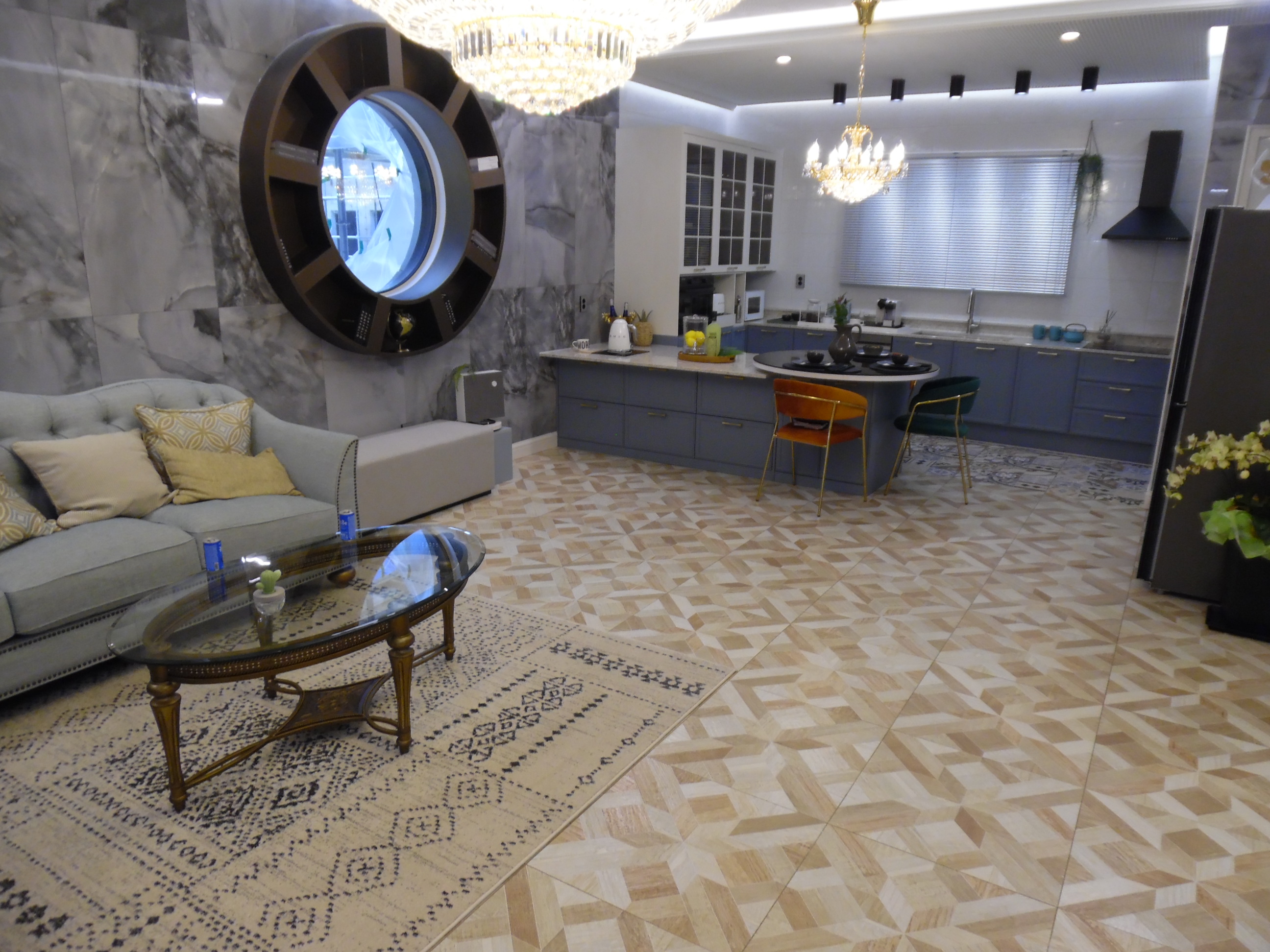 ㄷ자로 되어 있는 넓은 아일랜드식탁