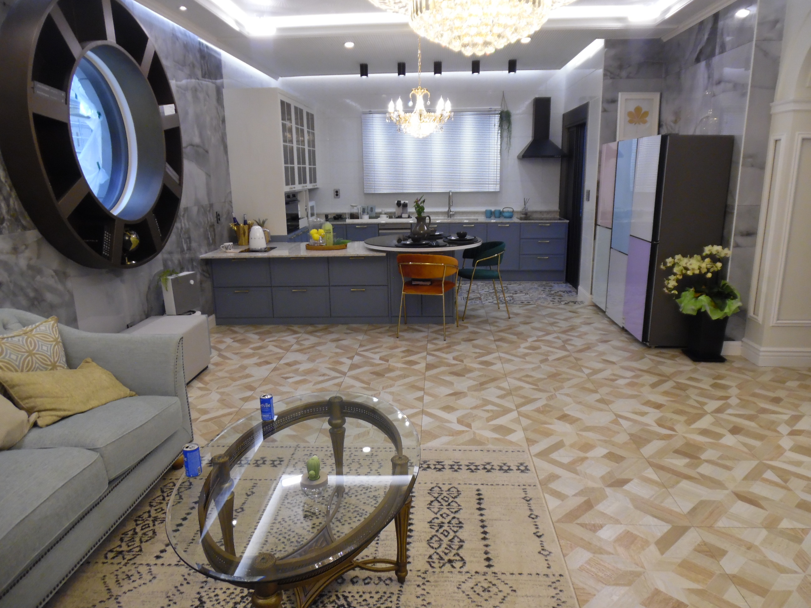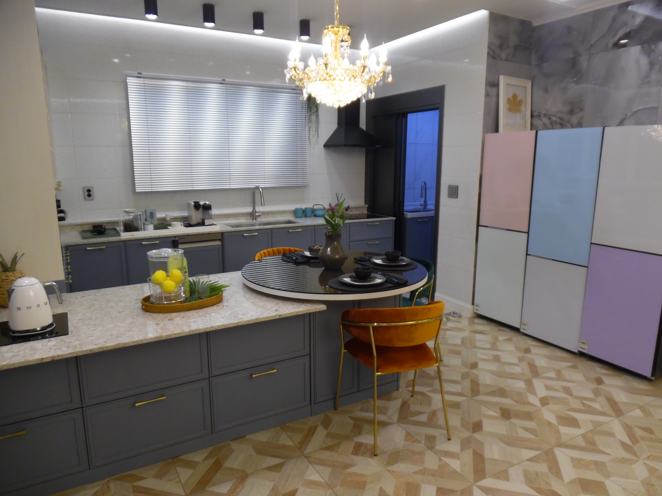 ㄷ자로 되어 있는 넓은 아일랜드식탁