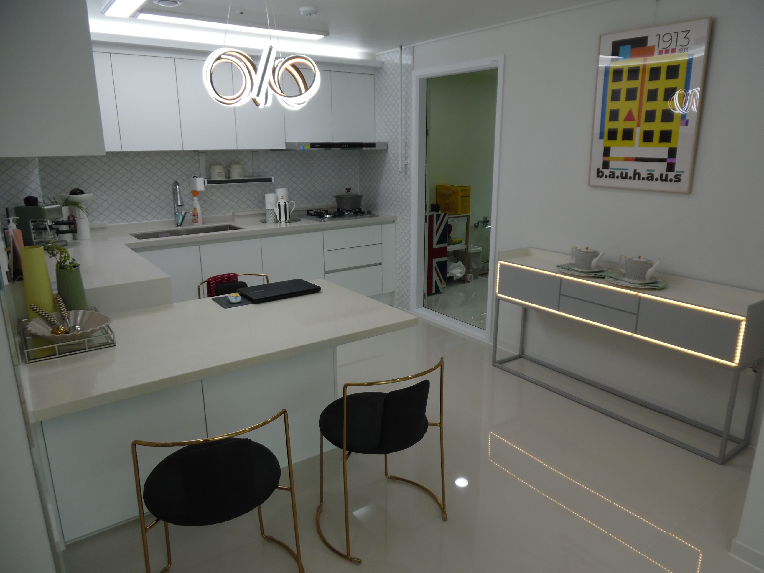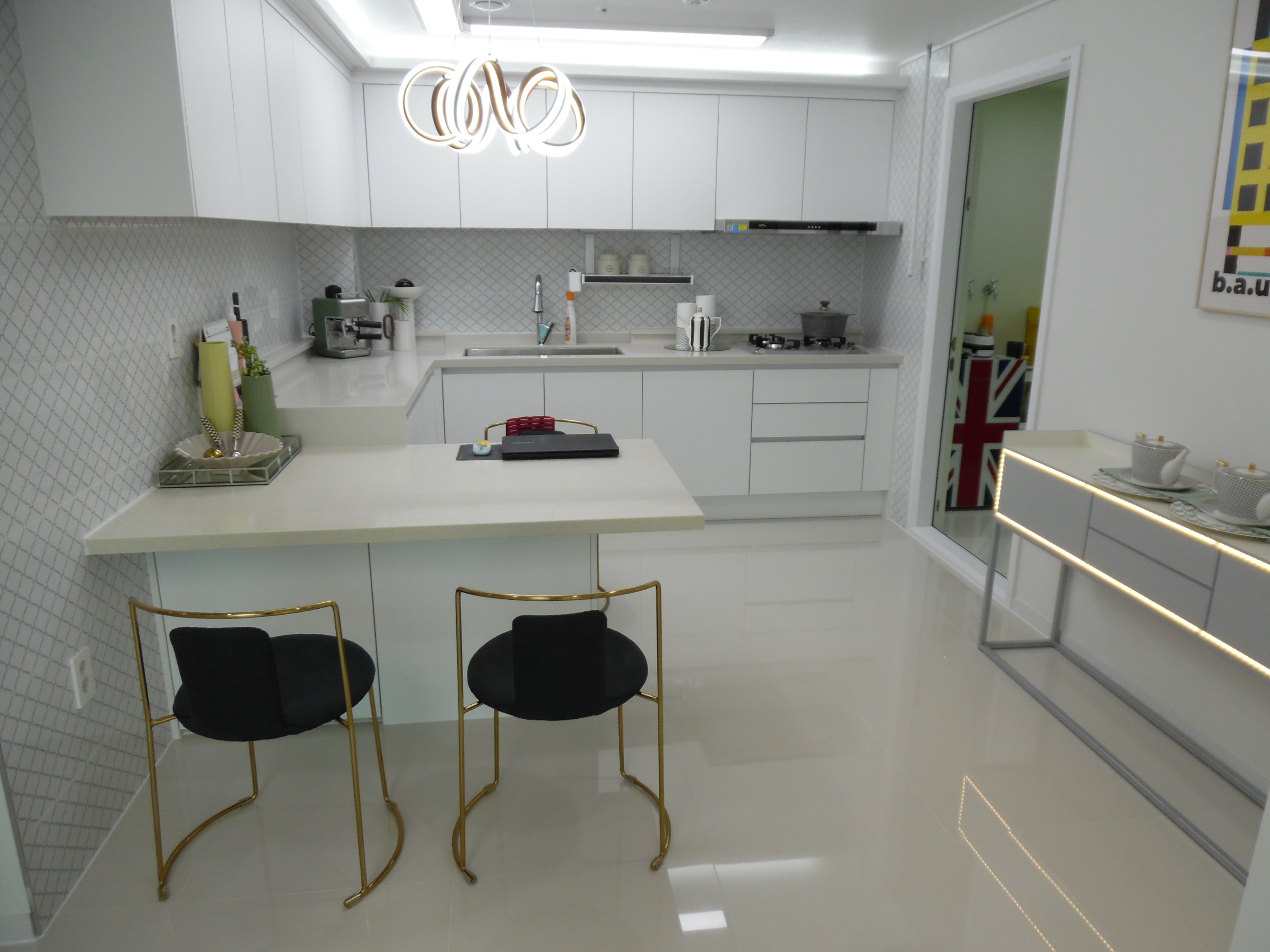 ㄷ자로 되어 있는 아일랜드식탁