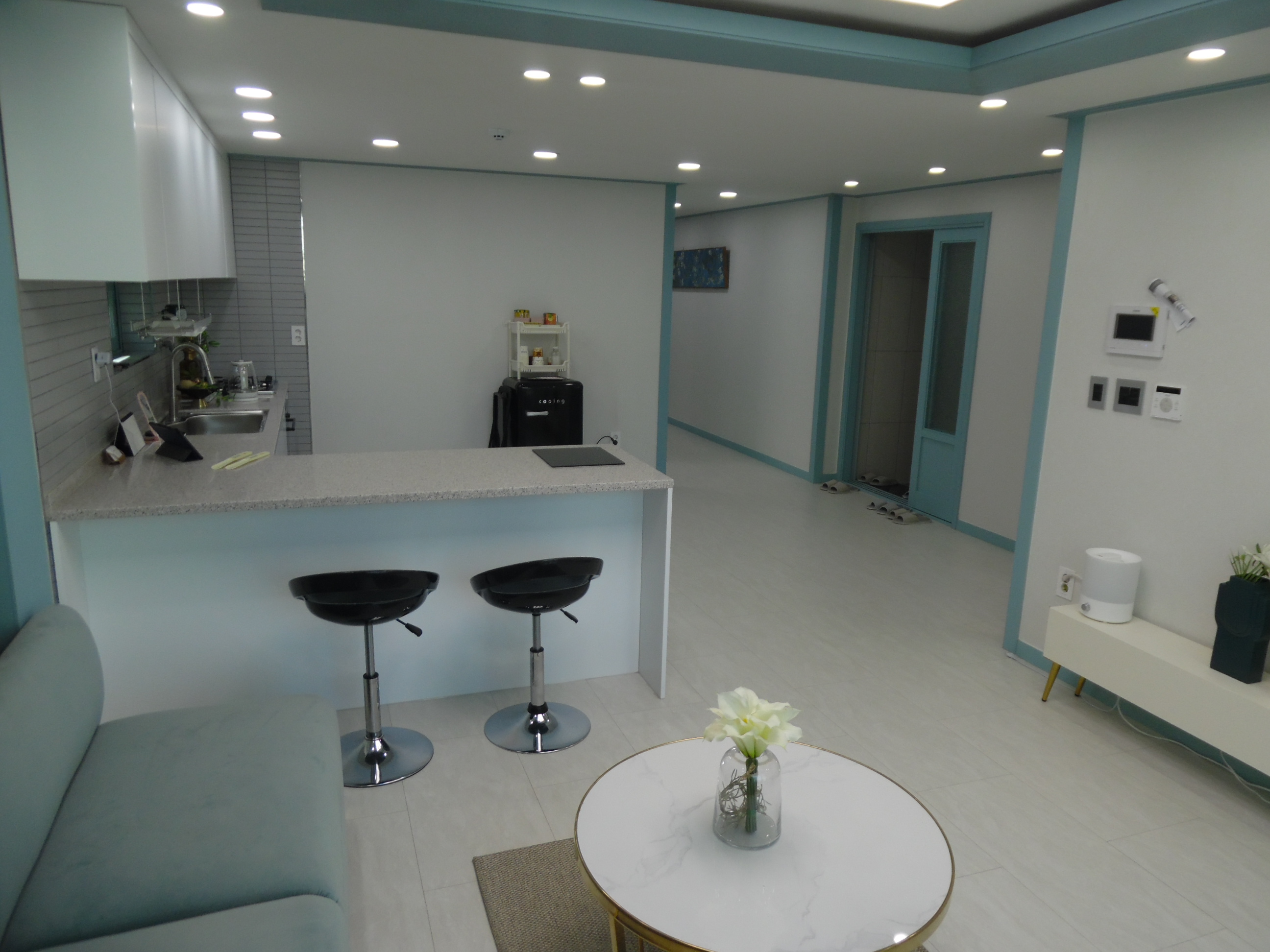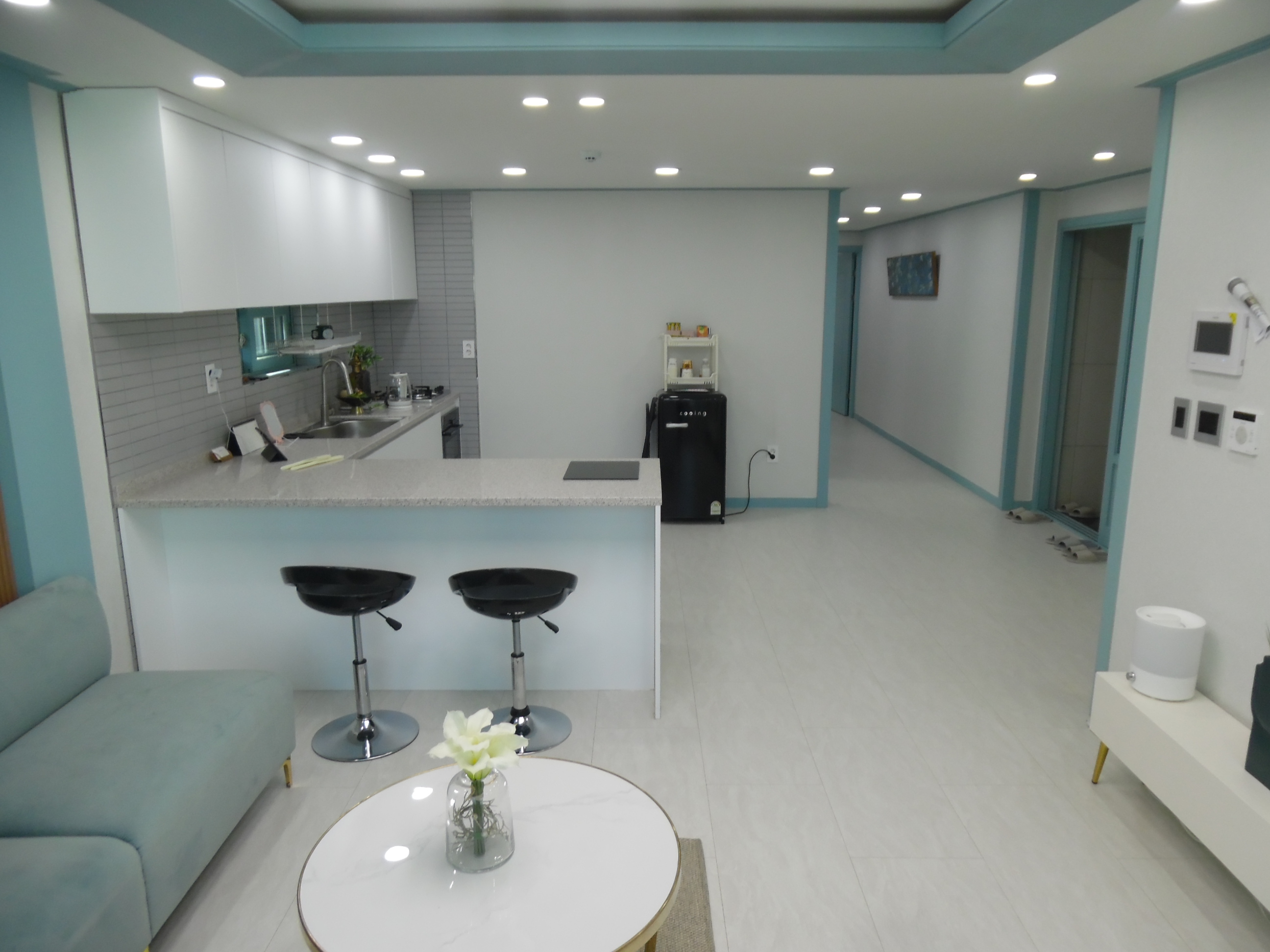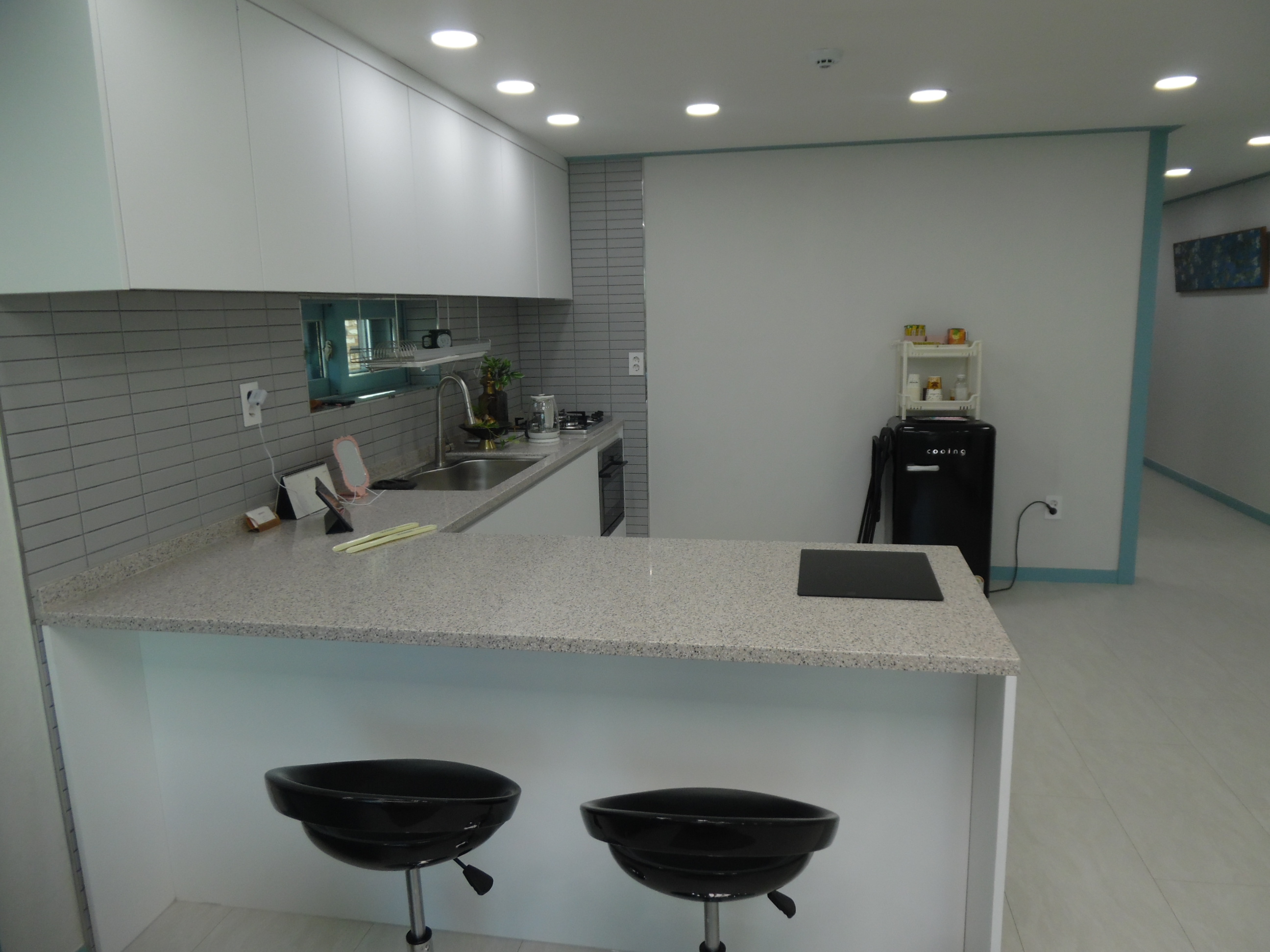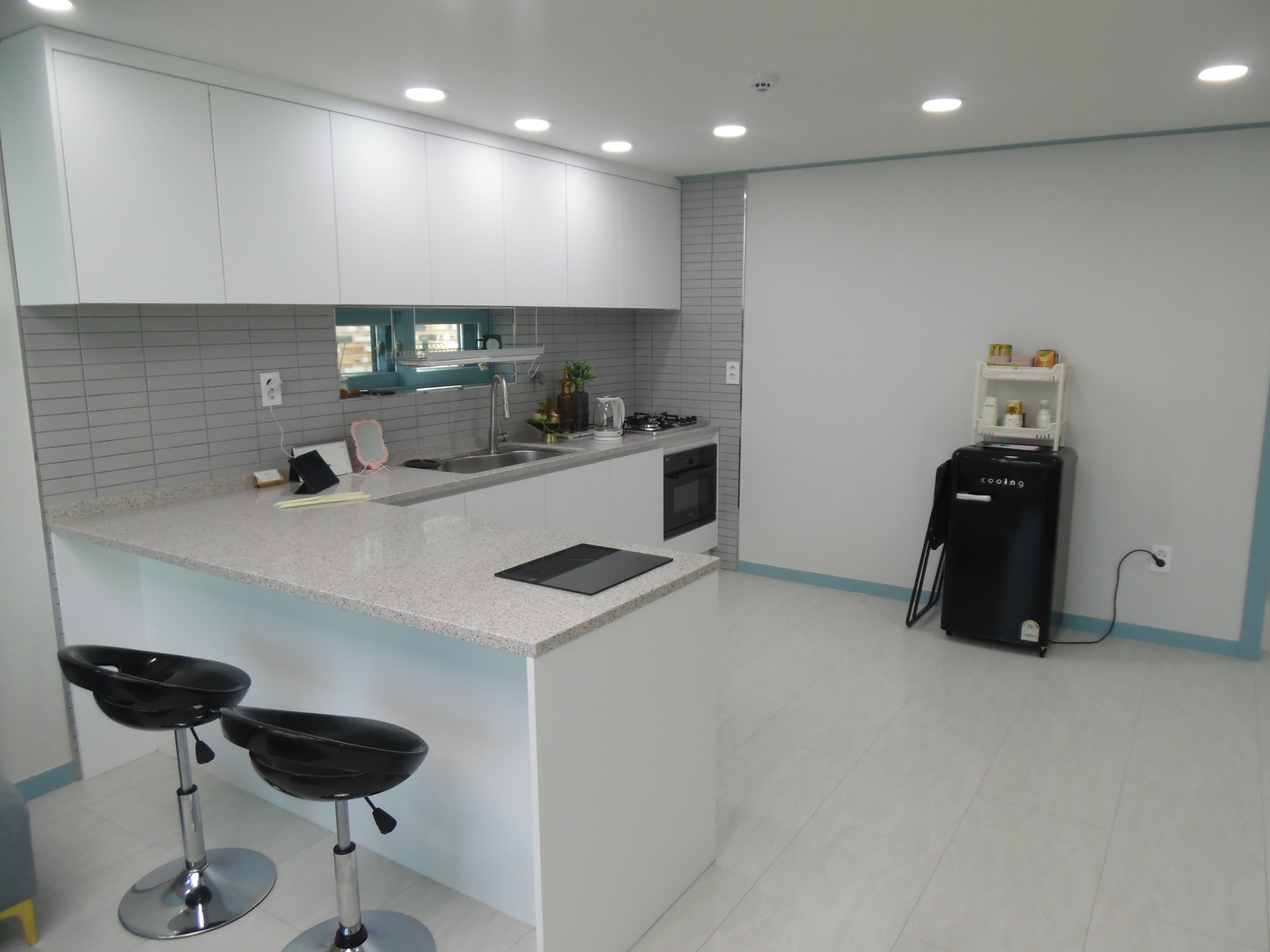 ㄱ자로 되어 있는 아일랜드식탁