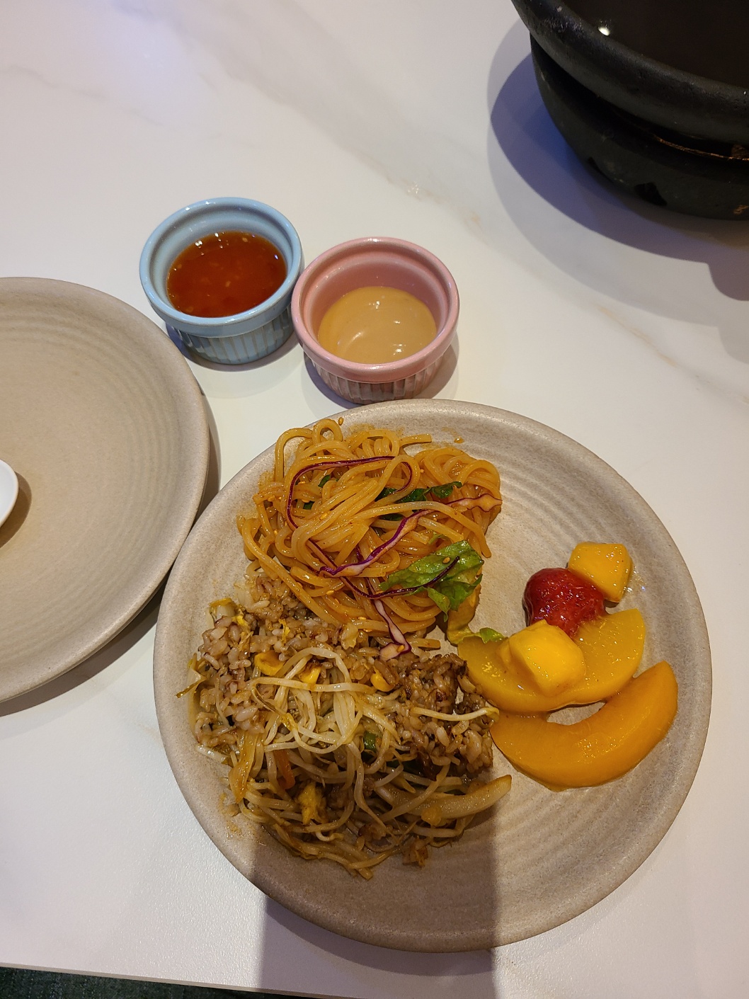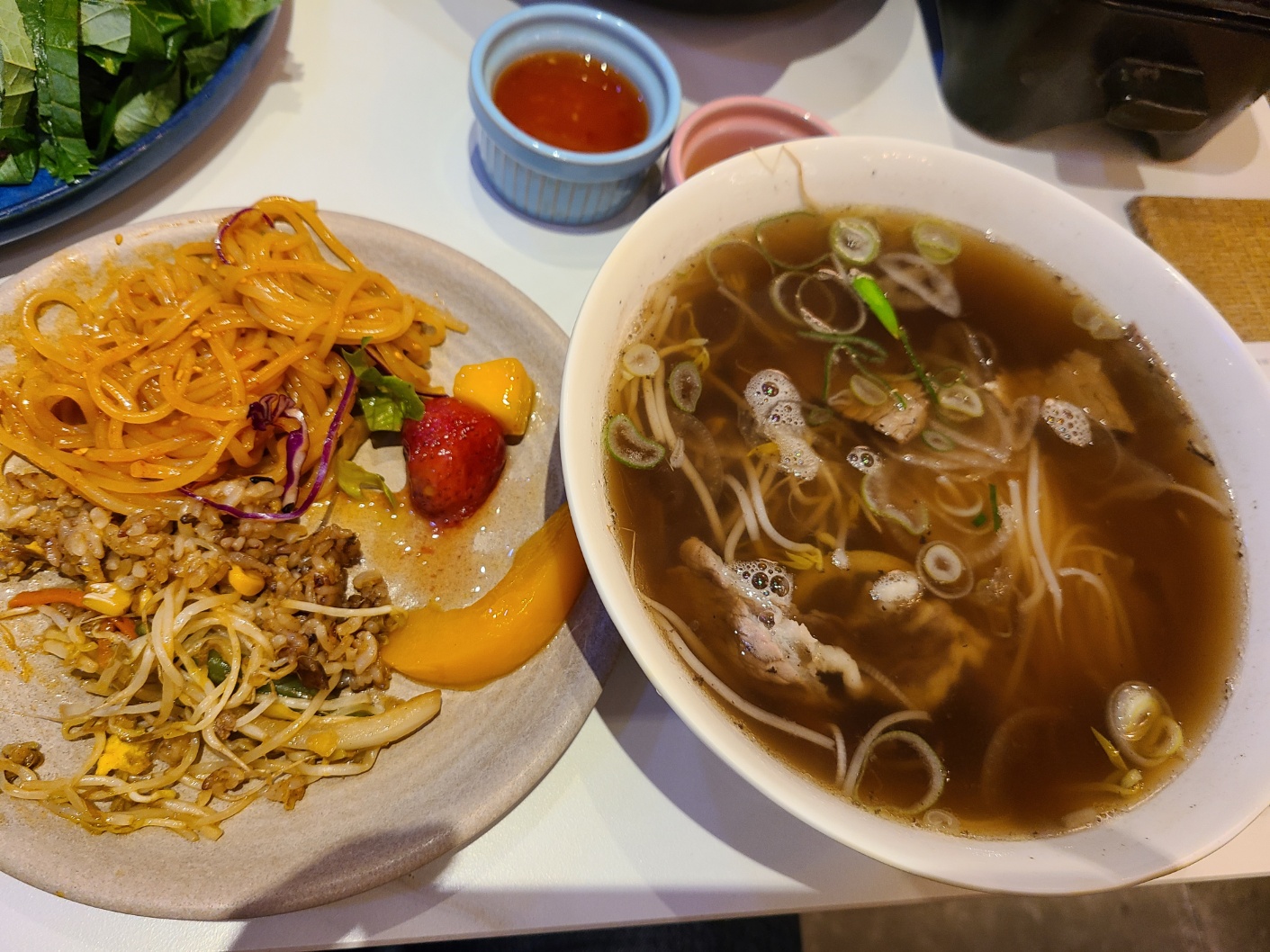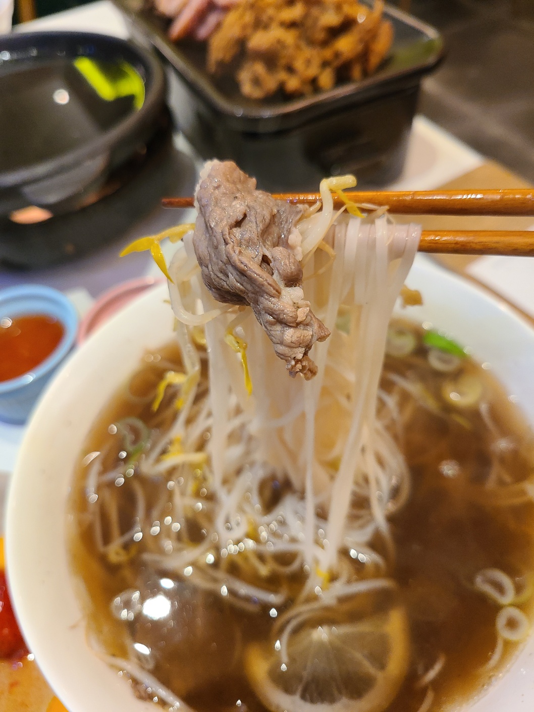 꽃찻은 채소 고기 쌀국수