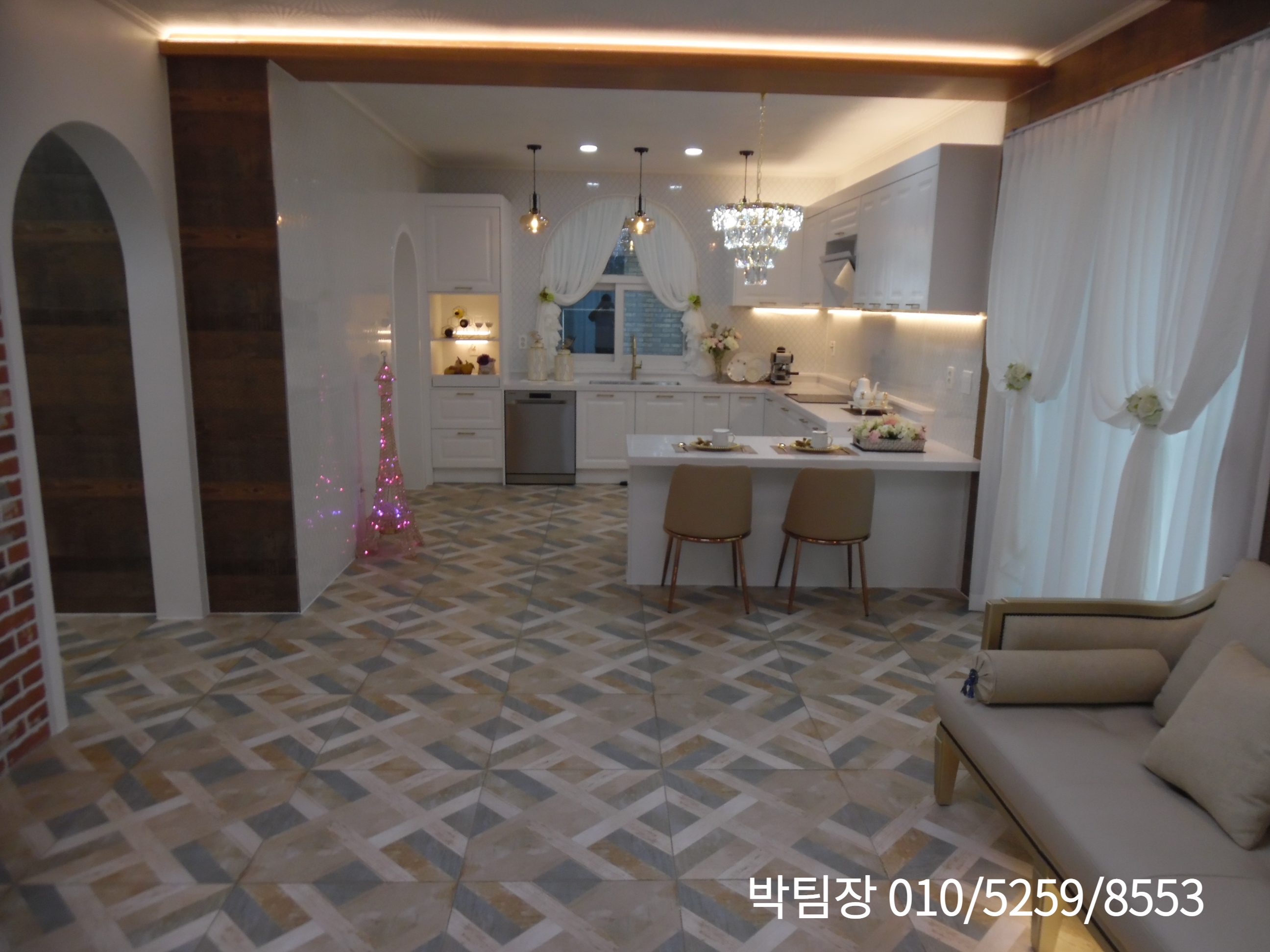 ㄷ자로 되어 있는 아일랜드식탁